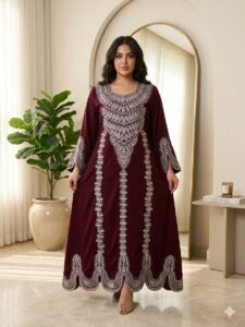 جلابية مصممة بعناية بتفاصيل تطريز فخم تمنحك حضور مميز في كل مناسبة.