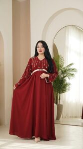 جلابية أنثوية بتصميم ناعم وانسيابي تعطيك إطلالة راقية بدون مبالغة