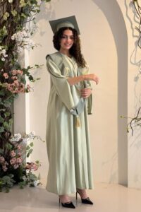 عباية تخرج فاخرة بتفصيل راقٍ وخامات عالية، مصممة لتمنحك حضور مميز في يوم التخرج والتصوير.