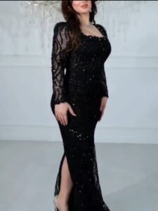 فستان سهرة راقٍ بتصميم أنيق يجمع بين البساطة والفخامة، مناسب لكل من تبحث عن إطلالة هادئة لكن ملفتة.