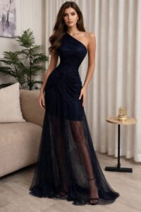 يتميز بقصة كتف واحد تعطيك حضور قوي وإطلالة مختلفة، مع قماش ناعم يبرز تفاصيل الجسم بشكل جذاب وانسيابي.