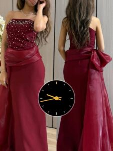 فستان سهرة بلون خمري ملكي يخطف الأنظار من أول ظهور ❤️