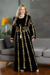 اللون: أسود ملكي مع تطريز ذهبي فاخر